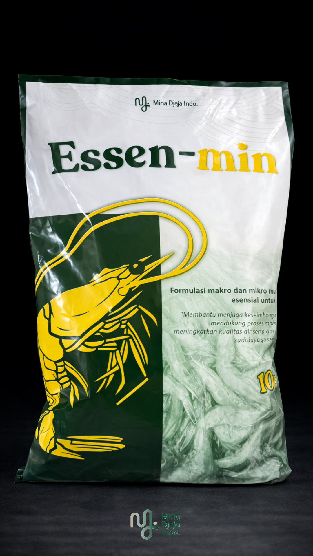 Mineral seperti essen min dan formulasi mineral lainnya berfungsi untuk melengkapi kebutuhan mikro dan makro nutrien yang dibutuhkan dalam siklus budidaya. Kandungan mineral ini mendukung proses molting, memperkuat cangkang udang, serta menjaga metabolisme dan aktivitas enzimatik. Sangat penting untuk memastikan pertumbuhan udang yang seragam dan berkualitas tinggi.